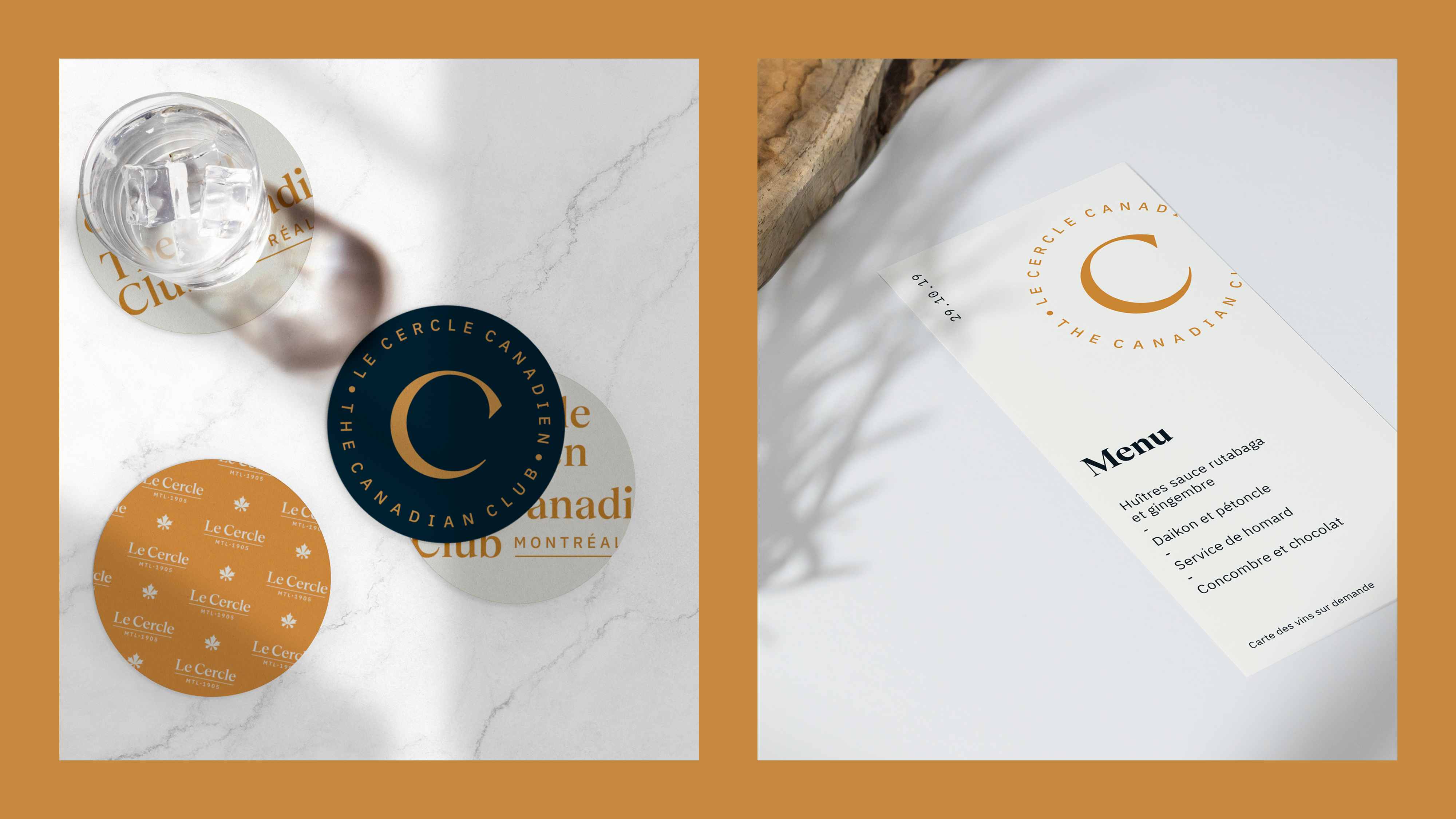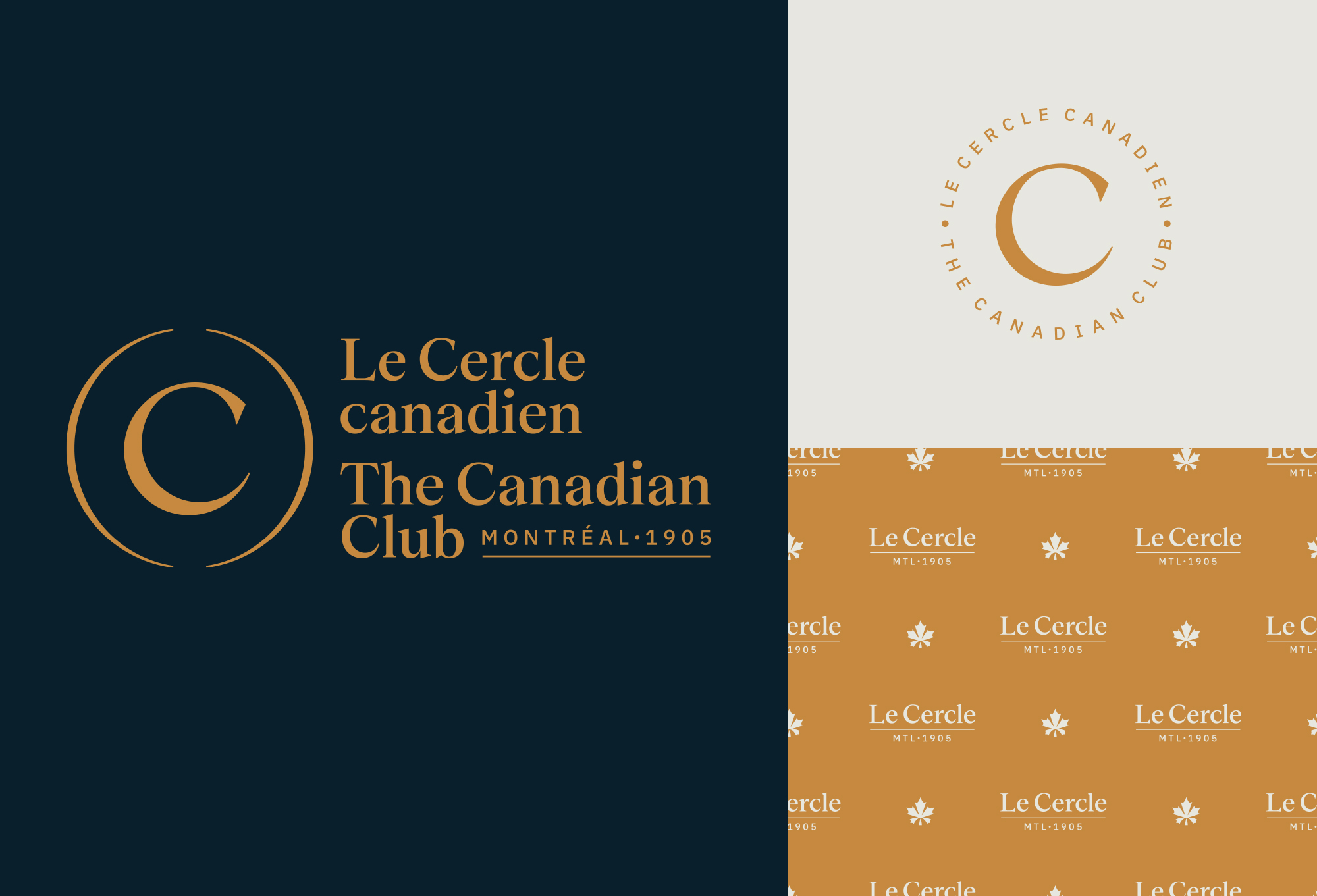 Identity and brand platform for The Canadian Club. Since its founding in 1905, the Canadian Club of Montreal has held over 2,000 luncheon-and-lecture events featuring a multitude of very distinguished guests. The new identity captures the essence of this institution; it reflects a sense of pride in its long and timeless tradition of excellence, while expressing its contemporary relevance. The graphic codes are consequently simple and classic.